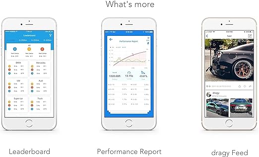 Hiermee kunt u de prestaties van uw auto testen! Test 0-100 km/u, 0-200 km/u, 100-200 km/u, 0-300 km/u, 1/4 mijl, 1/2 mijl en nog veel meer met uw Dragy!