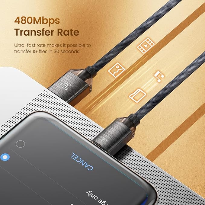 De kabel ondersteunt hoge datasnelheden tot 480 Mbps. Dit maakt het mogelijk om snel bestanden over te zetten tussen apparaten met een USB-C poort, zoals je smartphone en laptop.