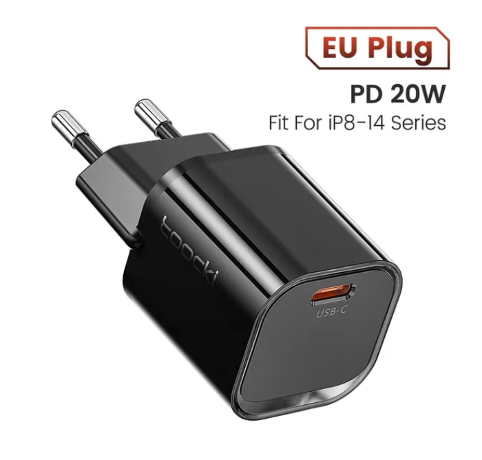 Toocki Oplader USB-C 20W 'Quick Charge 3.0' Snellader Type-C voor Smartphones, Tablets en Laptops - ZWART